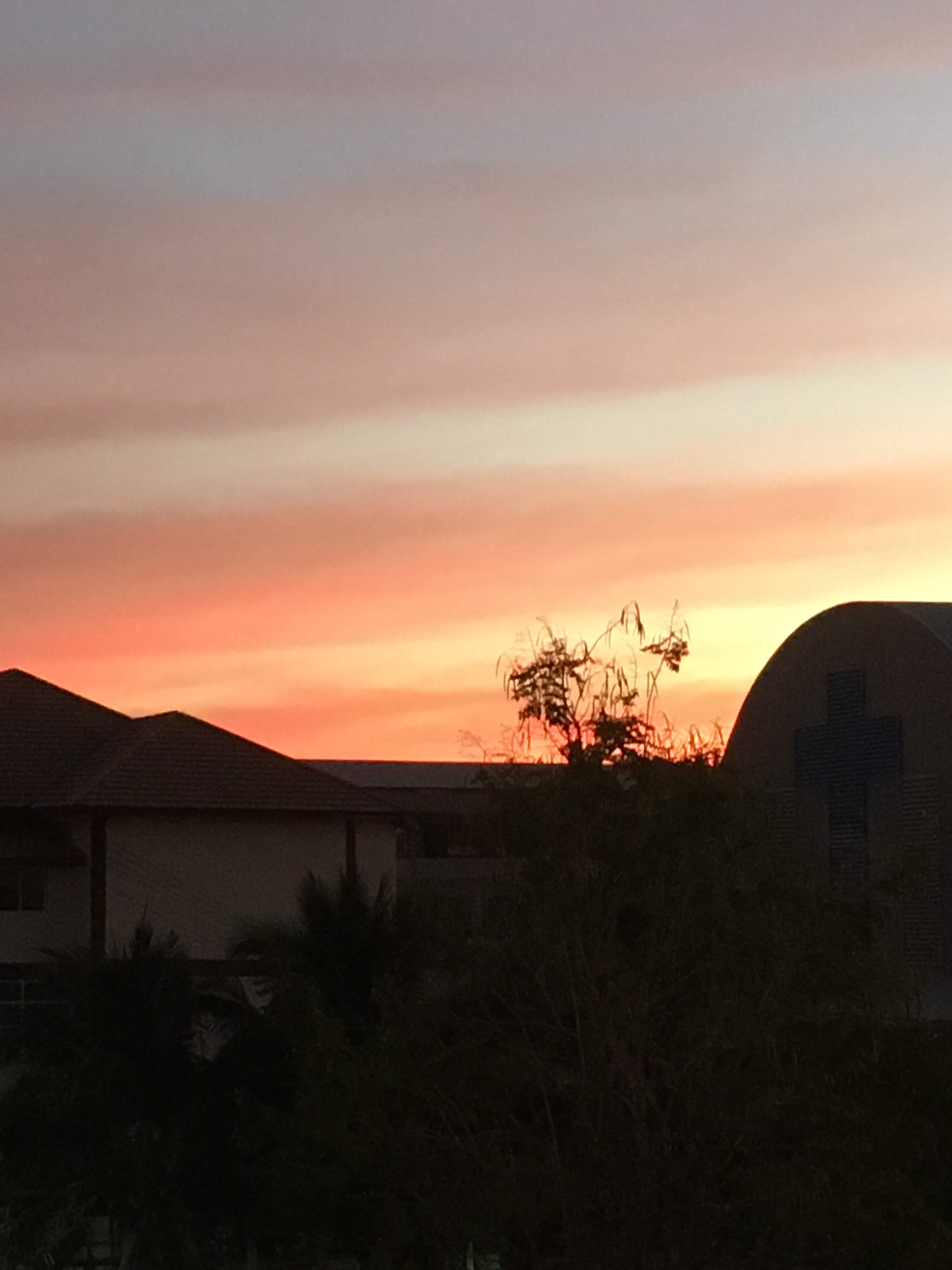 The colors of the sunset result from a phenomenon called scattering. Molecules and small particles in the atmosphere change the direction of light rays, causing them to scatter. Scattering affects the color of light coming from the sky, but the details are determined by the wavelength of the light and the size of the particle. The short-wavelength blue and violet are scattered by molecules in the air much more than other colors of the spectrum. This is why blue and violet light reaches our eyes from all directions on a clear day. But because we can’t see violet very well, the sky appears blue. Scattering also explains the colors of the sunrise and sunset. Because the sun is low on the horizon, sunlight passes through more air at sunset and sunrise than during the day, when the sun is higher in the sky. More atmosphere means more molecules to scatter the violet and blue light away from your eyes. If the path is long enough, all of the blue and violet light scatters out of your line of sight. The other colors continue on their way to your eyes. This is why sunsets are often yellow, orange, and red.